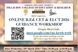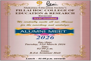 Mahatma Education Society’s Pillai HOC College of Education and Research, established in 2010, affiliated to the University of Mumbai, is situated amidst lush green and serene environment at Rasayani. PHCER fosters and nurtures a conducive learning environment with a futuristic outlook at all arenas thereby catering to holistic development. PHCER envisions creating a rich educational milieu that promotes caring, committed and competent teachers to cope with the new challenges in the global context.